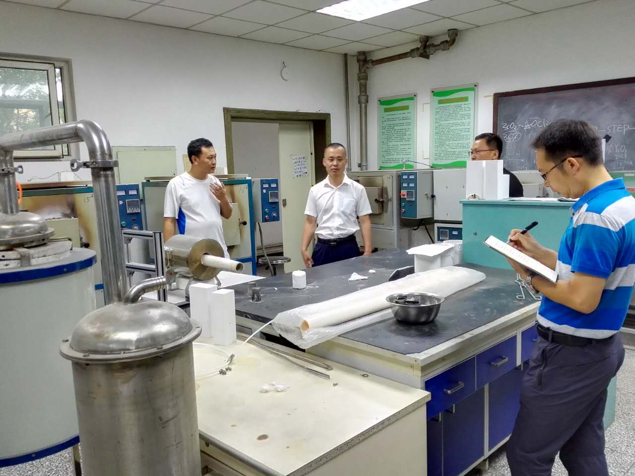 为贯彻落实《关于在暑假前集中开展“双排查”工作的通知》精神,7月14日上午,公司开展实验室安全大检查。公司党总支书记郝喜红教授带领实验中心主任彭军、副主任吴忠旺公司负责人一同检查公司所有实验室。