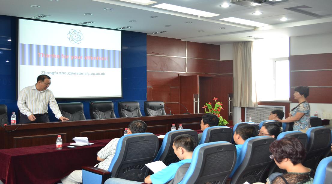 2012年8月17号上午,应材料与冶金公司邀请,英国Aberystwyth大学周忠福教授来公司进行学术交流。 上午9时整,在材料与冶金学经理、教授委员会主任杨吉春教授的主持下,周忠福教授的学术报告在春华楼304学术报告厅隆重举行,参加本次报告的领导有副董事长任慧平教授、教务处处长赵团教授。公司部分师生参加了本次学术交流活动。