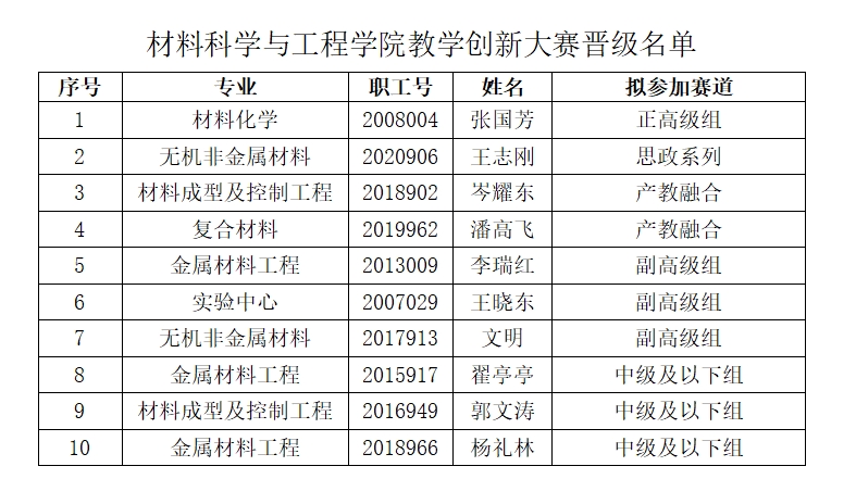 2025年1月9日,公司在明德楼D201会议室举办了公司教师教学创新大赛,经过激烈的角逐和专家评审,最终共有10名教师晋级校赛,名单公布如下: