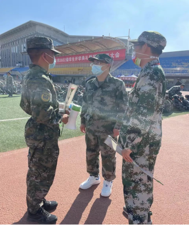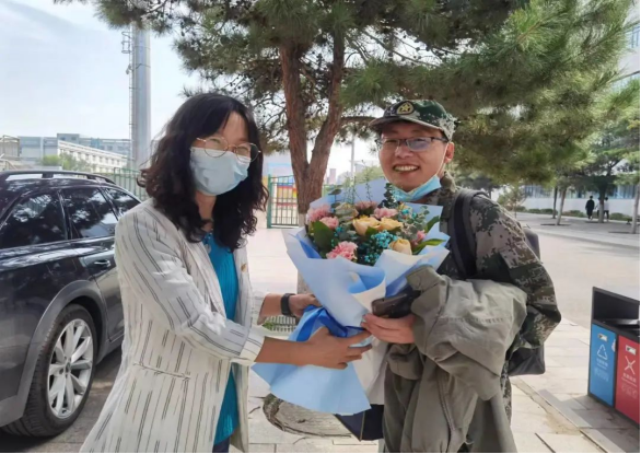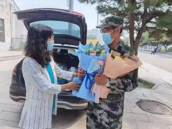 9月10日上午,党委副书记、副经理王海燕以及学团办各位老师向军训期间辛苦承训的教官及教导员老师献花,并对他们认真负责的态度与完成各项工作的情况表示认可与感谢。
