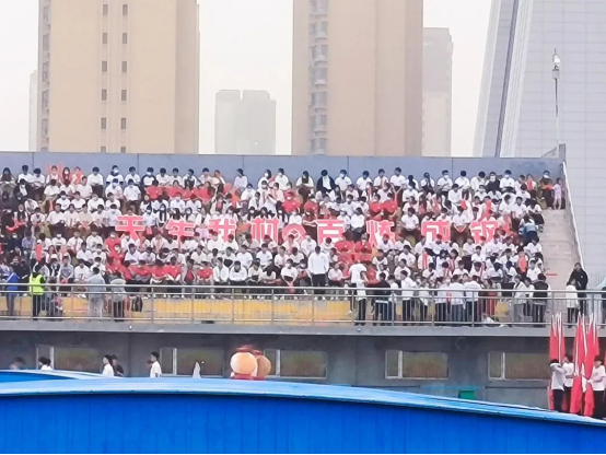 观众席上的材冶学子们为健儿呐喊加油!