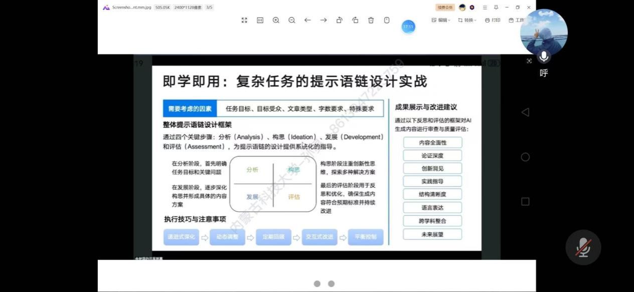 活动中,青年教师呼陟宇凭借自身对 DeepSeek 的深入理解,为大家进行了细致的介绍与讲解。他从 DeepSeek 的基本原理入手,逐步深入到其在数据处理、分析预测等方面的强大功能,让在场人员对这一前沿技术有了清晰认知。讲解结束后,全体人员围绕 DeepSeek 如何有效辅助科研教学展开热烈讨论。大家各抒己见,提出了诸多创新性的想法,比如利用 DeepSeek 助力科研项目申报、学术论文润色。以及整理教学内容,开发教学课件,提升教学效果等方面。