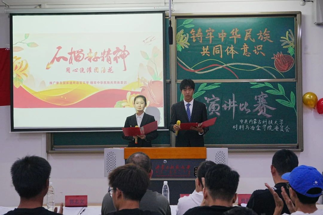 为全面开展“推广普及国家通用语言文字 铸牢中华民族共同体意识”主题宣传,深入贯彻落实党的二十大精神以及中央民族工作会议精神,促进各民族交往交流交融,材料与冶金公司员工党支部于9月20日19:00在明德楼H206举办“铸牢中华民族共同体意识”主题演讲比赛。